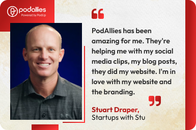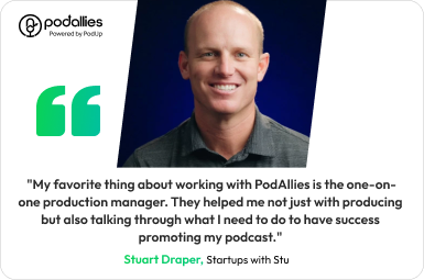 PodAllies uses PodUp, our industry-leading podcasting software suite that revolutionizes how podcasting is done and sets us apart from other podcast production agencies.