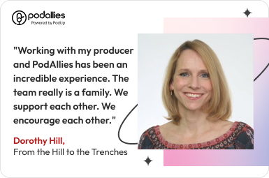 When you hire PodAllies , you're teaming up with experts who have years of experience and expertise producing podcasts. From podcast production and marketing to growth, monetization and management, we'll take care of many aspects of the next-level podcast you need.